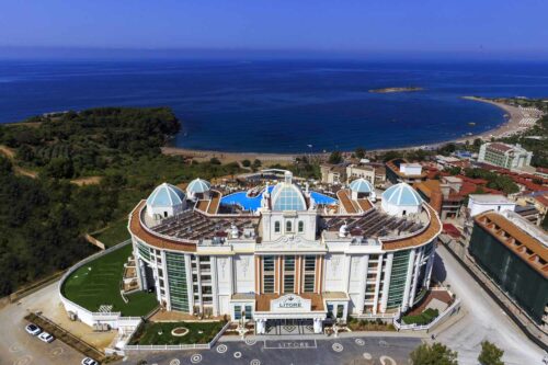 Het hotel ligt direct aan het strand, centraal in Okurcalar.
