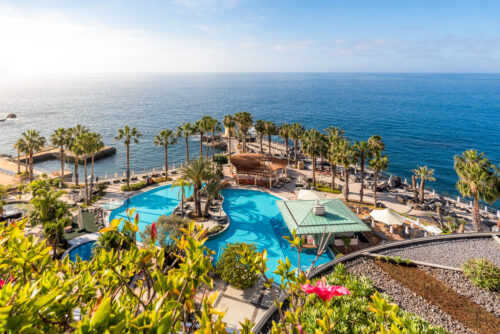 Dit hotel heeft een spectaculaire ligging, direct aan de Atlantische Oceaan, in de baai van Funchal. In de directe omgeving van het hotel bevinden zicht een supermarkt, verschillende winkels, bars en restaurants. De zee kunt u eveneens binnen enkele minuten lopen bereiken. Het stadscentrum ligt op ongeveer 1 km afstand van het gebouw. Een halte van het openbaar vervoer ligt op ca. 50 meter afstand van het hotelcomplex.